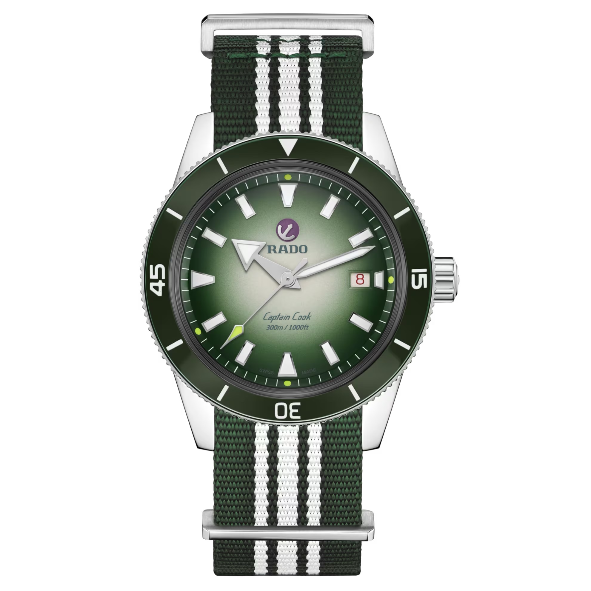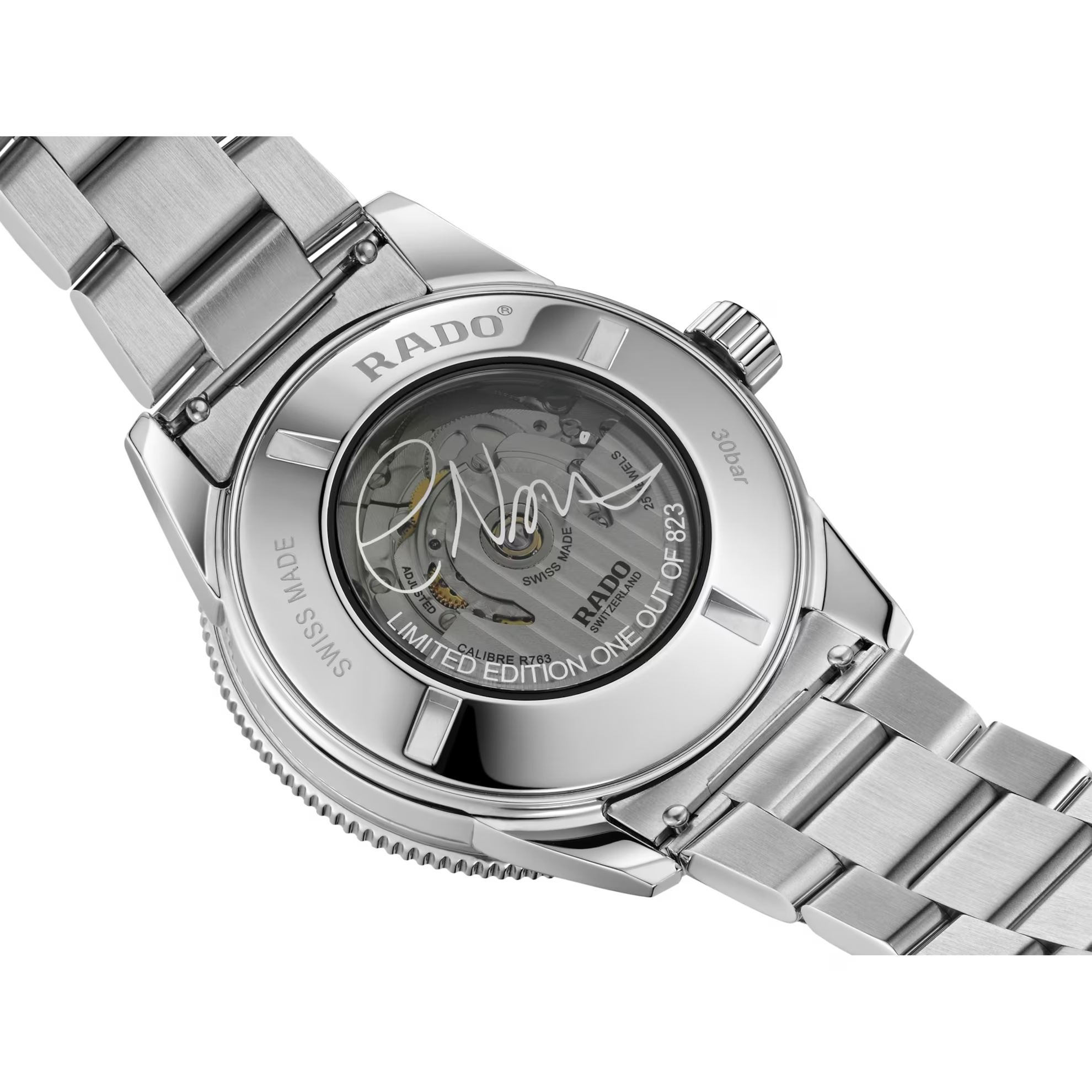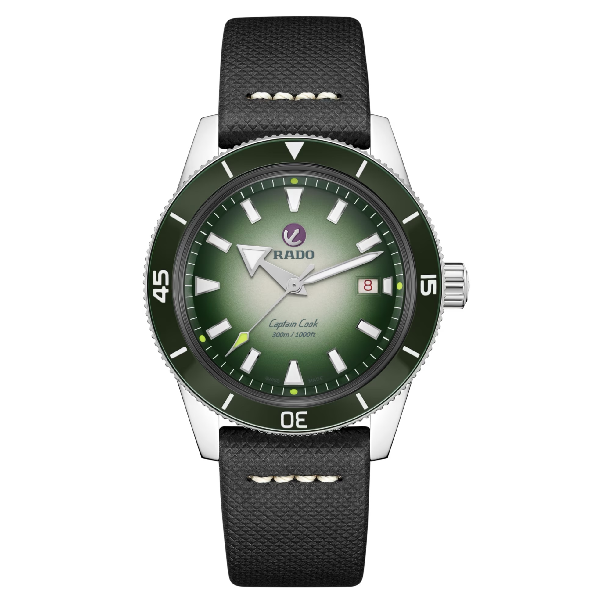 El Captain Cook x Cameron Norrie Limited Edition incluye una caja de 42 mm y una corona de acero inoxidable pulido, además de un bisel giratorio de ese mismo material con una incrustación de cerámica pulida de alta tecnología de color verde con números y marcas grabados con Super-LumiNova® de color blanco mate. Este reloj está accionado por un mecanismo automático Rado calibre R763 que ofrece unas impresionantes 80 horas de reserva de marcha. El Captain Cook x Cameron Norrie Limited Edition se presenta en un estuche de cuero de color verde en el que destaca la firma de Cameron; además, va acompañado de un certificado de edición limitada. La tapa trasera lleva la inscripción metalizada LIMITED EDITION, ONE OUT OF 823, una referencia al número de unidades de este reloj de edición limitada, que está inspirado en la fecha del cumpleaños de esta estrella del tenis (el 23 de agosto). Además, hay disponible una pareja de correas opcionales: una correa clásica de cuero de color negro y una correa textil NATO de color verde y blanco.