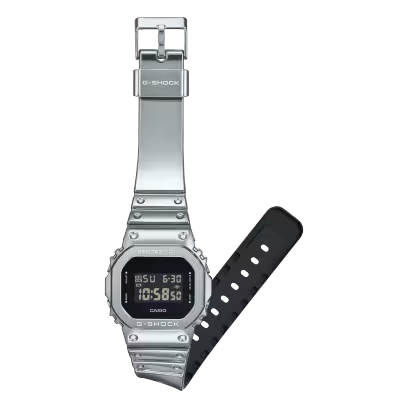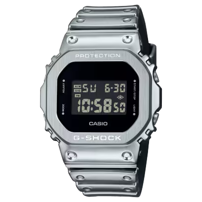 G-STEEL destaca por su brillo sofisticado y por un esquema monocromático de color plateado La estética monocromática combina con un bisel metálico plateado y una resistente correa de silicona del mismo color. La superficie de la correa está protegida con una lámina de uretano acabada con deposición de vapor en plata, logrando un brillo metálico en una correa extremadamente suave y cómoda. Suaves y versátiles de llevar, con un brillante aspecto metálico, estos relojes son artículos de moda ideales para acompañarte a donde quieras ir. Elige tu favorito: el icónico GM-5600 con su estilo digital clásico.