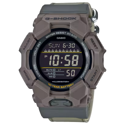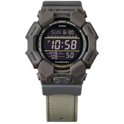 Descubre el GD-010, un G-SHOCK de gran tamaño con batería de larga duración, pensado para acompañarte en tu estilo de vida activo y en contacto con la naturaleza. Diseñado para soportarlo todo, este modelo ofrece resistencia a los golpes y una batería que dura hasta 10 años. La caja está fabricada con resina de base biológica, un material más sostenible que ayuda a reducir el impacto medioambiental. La correa está hecha con CORDURA® ¹ re/cor™, una combinación de fibra CORDURA® de alta resistencia y plástico PET reciclado. Además, se tiñe con FOOD TEXTILE, un proyecto que reutiliza extractos naturales de alimentos —en este caso, de equinácea— para conseguir tonos suaves y naturales. Gracias a su diseño fresco y a los materiales con los que está fabricado, este reloj encaja tan bien en un entorno informal como en el día a día laboral. ¹ CORDURA® es una marca registrada de INVISTA para tejidos duraderos. FOOD TEXTILE es una iniciativa que da una nueva vida a los residuos alimentarios, transformándolos en tintes naturales para promover una moda más sostenible. Debido al uso de tintes naturales, cada unidad es única y puede presentar variaciones en el color.