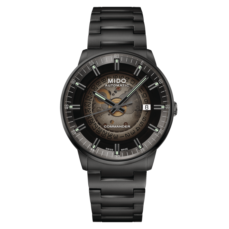 Con el reloj suizo Commander Gradient, la mecánica relojera se hace visible gracias a una carátula de acrílico transparente, una novedad en esta icónica colección. Los componentes del Calibre 80 se pueden admirar tanto en el lado de la carátula como en la parte trasera gracias a un fondo de caja transparente. Adornada con un original efecto ahumado degradado, la carátula se vuelve cada vez más opaca en los bordes, mientras que la fecha a las 3 en punto se destaca perfectamente.