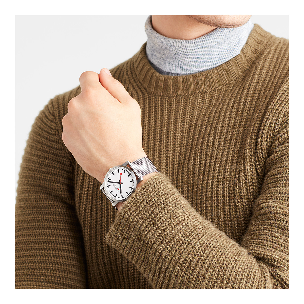La caja de este reloj es muy delgada, solo 6,2 mm de alto, de acero mate y de 41mm de diámetro, acabada con un cristal de zafiro. El brazalete es de malla milanesa y está diseñado para adaptarse al tamaño de cualquier muñeca.