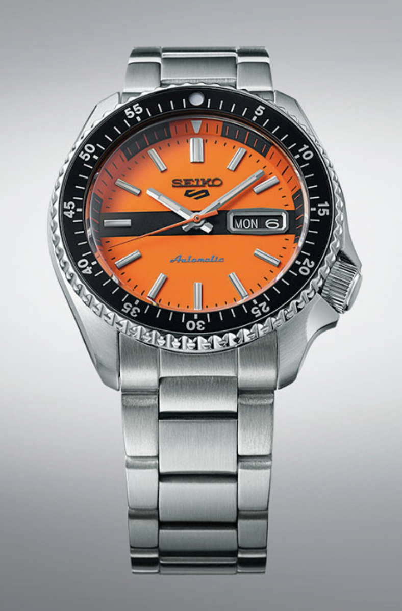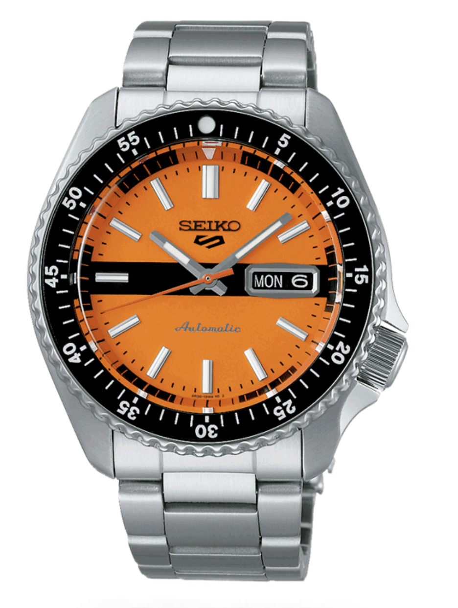 Es uno de los 3 relojes SKX Sports Style que rinden homenaje a la Colección Seiko 5 Sports de 1969, que además de destacar por su fiabilidad y durabilidad, ofrecían una variedad de estilos y diseños. Los nuevos relojes de edición especial reflejan el color de tres relojes históricos populares. Cada creación con una esfera plateada, negra o naranja tiene un bisel que sigue el diseño del reloj original de la Colección de 1969. Combinan estos homenajes clásicos con la legendaria caja SKX, que tiene forma icónica con protectores de corona y un bisel giratorio unidireccional. Cada uno viene en una pulsera de acero inoxidable de tres filas.