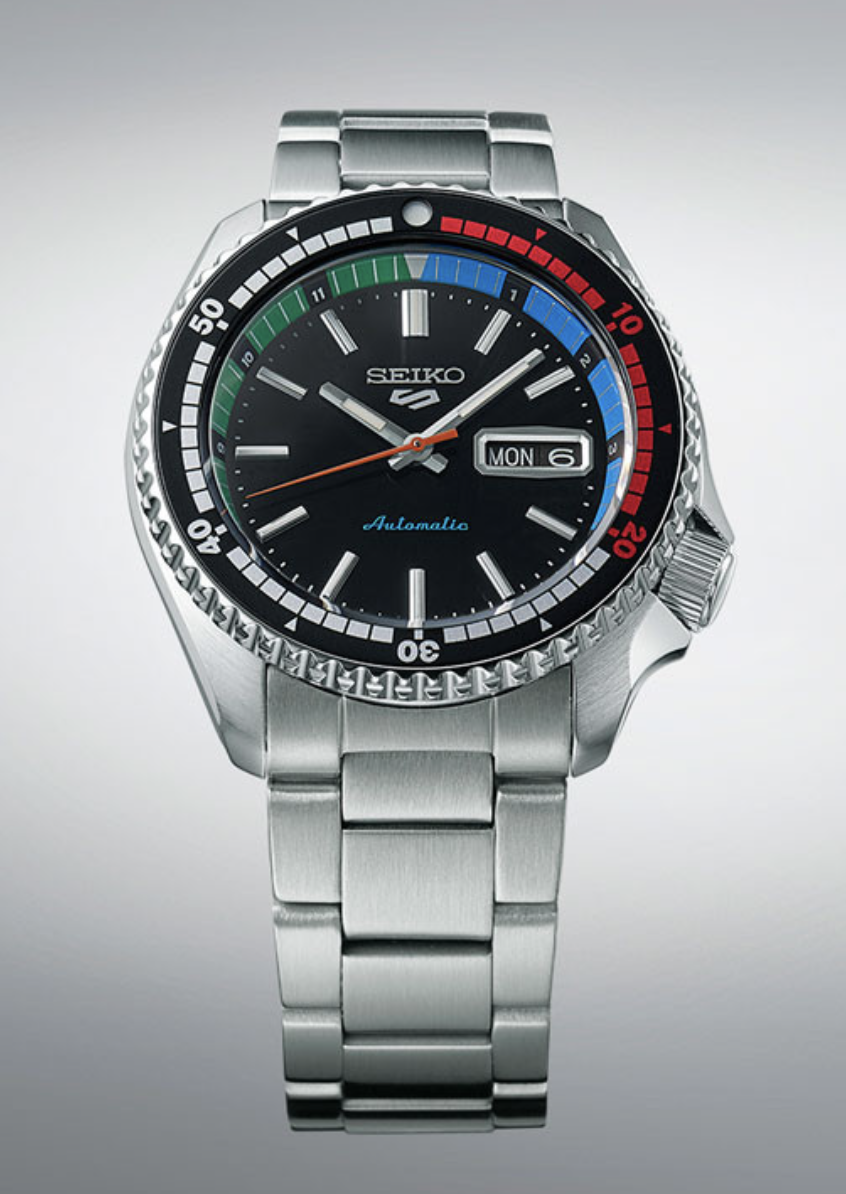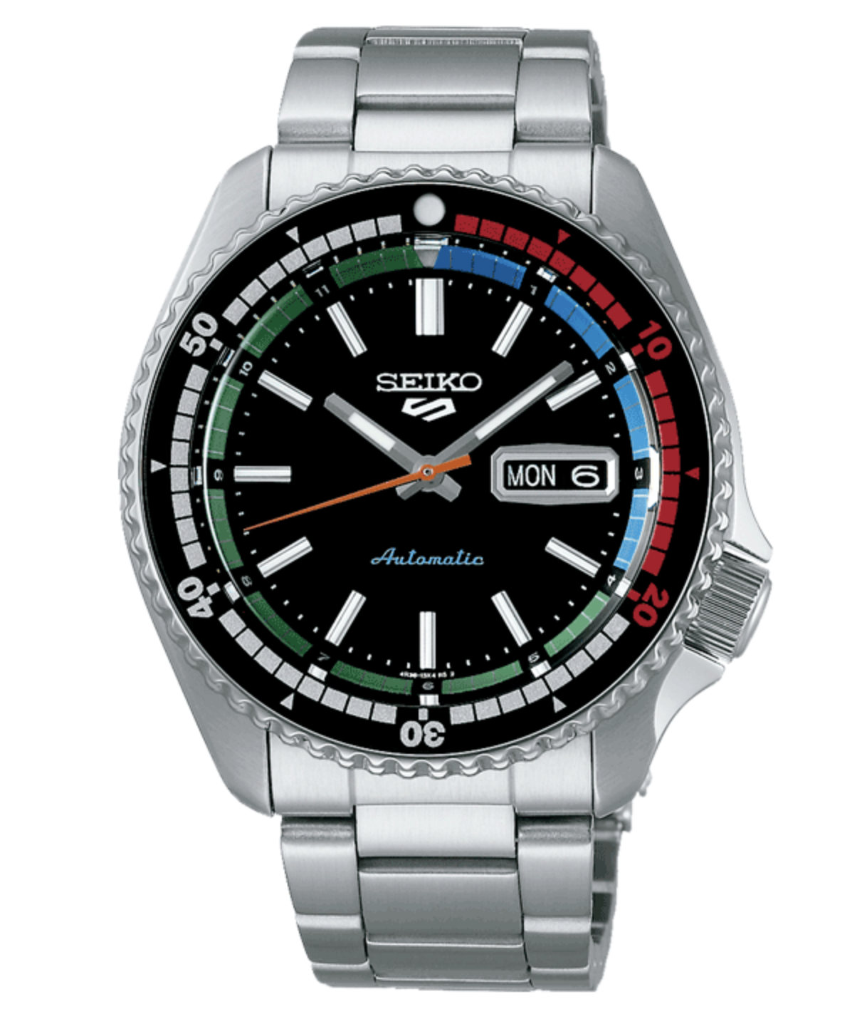 Es uno de los 3 relojes SKX Sports Style que rinden homenaje a la Colección Seiko 5 Sports de 1969, que además de destacar por su fiabilidad y durabilidad, ofrecían una variedad de estilos y diseños. Los nuevos relojes de edición especial reflejan el color de tres relojes históricos populares. Cada creación con una esfera plateada, negra o naranja tiene un bisel que sigue el diseño del reloj original de la Colección de 1969. Combinan estos homenajes clásicos con la legendaria caja SKX, que tiene forma icónica con protectores de corona y un bisel giratorio unidireccional. Cada uno viene en una pulsera de acero inoxidable de tres filas.