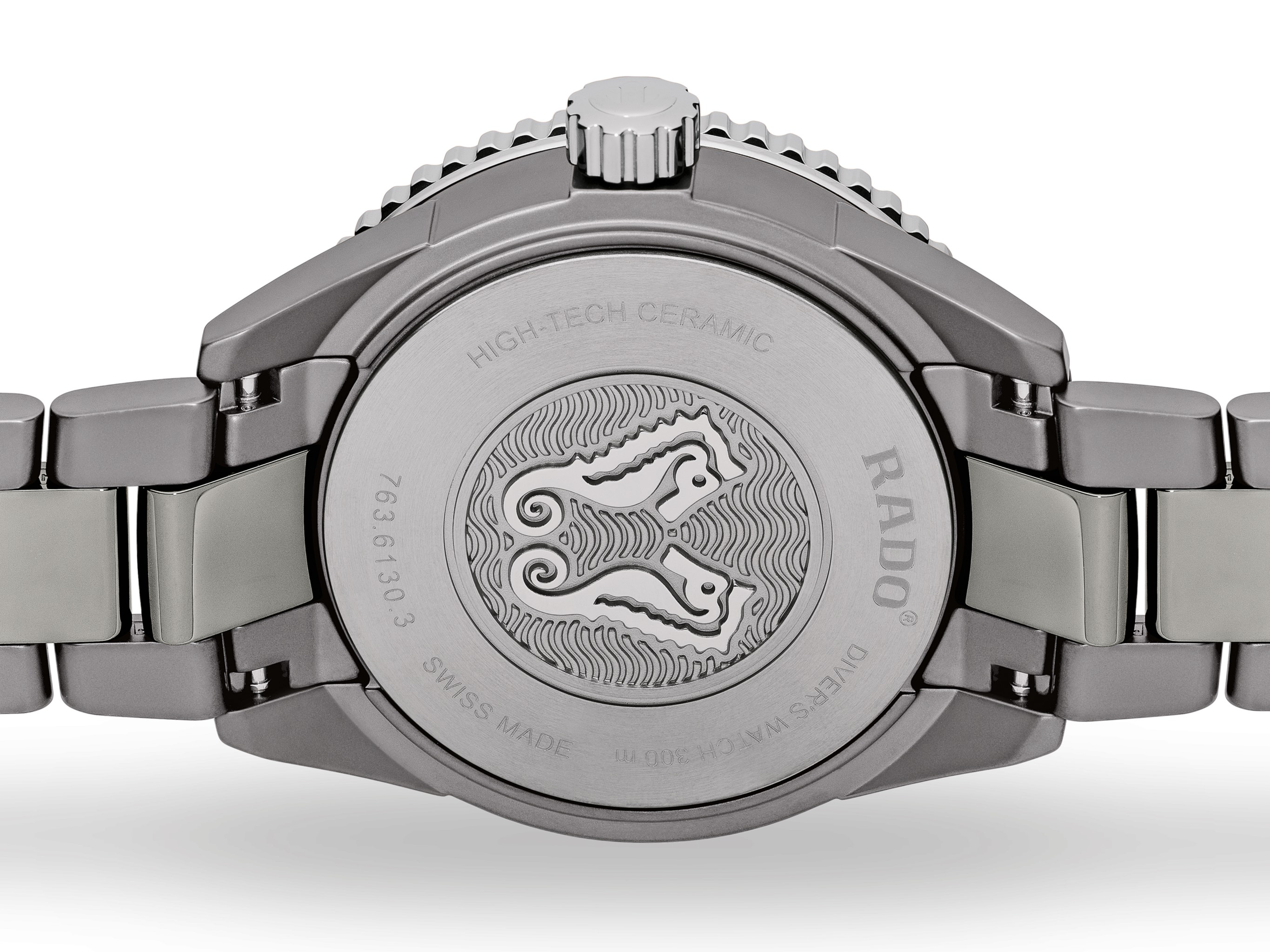 El Captain Cook High-Tech Ceramic Diver ofrece resistencia al agua hasta 300 m. Las agujas y los índices de este reloj de buceo con certificación ISO 6425 están revestidas de Super-LumiNova®, lo que garantiza una excelente visibilidad en la esfera lacada y pulida de color azul con un patrón de rayos de sol. La caja de 43 mm con diseño de monobloque está elaborada con cerámica de plasma mate de alta tecnología y el bisel giratorio, con acero inoxidable endurecido y pulido. En su interior, el movimiento automático Rado R763 supera los requisitos estándar de prueba de precisión de 3 posiciones a 5 y ofrece 80 horas de reserva de marcha. Este modelo se presenta con un brazalete de cerámica de plasma pulida de alta tecnología. Sea cual sea su campo de exploración, su Captain Cook High-Tech Ceramic Diver será un compañero fiable y sólido que permanecerá a su lado durante muchos años.