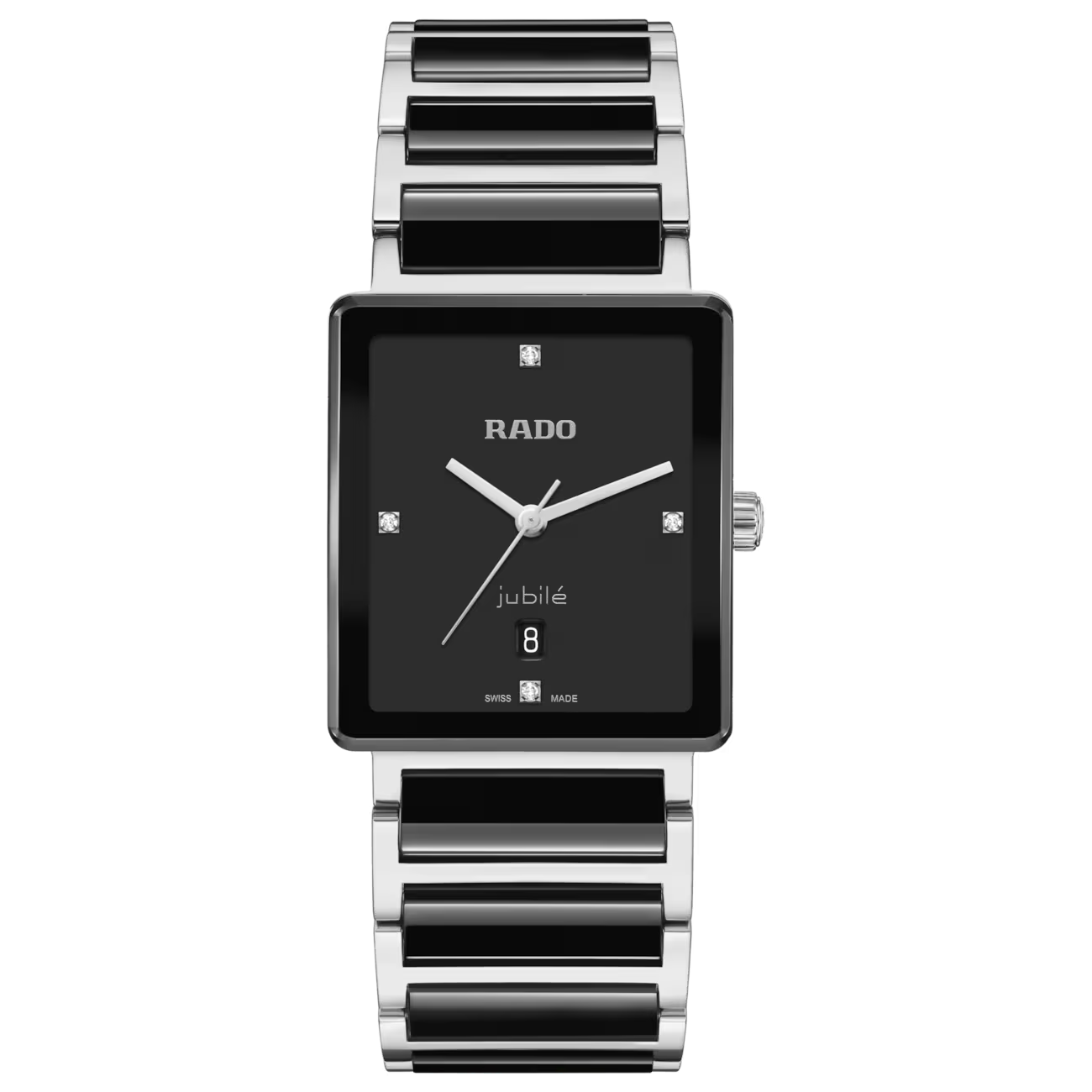 Sabemos que tiene un gusto exquisito y exigente; precisamente por ese motivo, el Rado Integral es su elección ideal. Su armoniosa y fina caja de acero inoxidable pulido mantiene la inconfundible forma cuadrada del Rado Integral y unas proporciones armoniosas respecto al brazalete ligeramente ahusado para realzar el placer estético que transmite su diseño. La caja incluye un cristal de zafiro curvado y biselado con revestimiento antirreflectante y metalización de color negro. La esfera presenta un acabado lacado de color negro, acompañado de los cuatro tradicionales diamantes Top Wesselton en las marcas horarias principales, junto con logotipos de Rado y “jubilé” de color plata y agujas rodiadas. Este icónico diseño de Rado tiene una amplia esfera que facilita la lectura; asimismo, incorpora materiales de alta tecnología que proporcionan una comodidad excepcional. El movimiento de cuarzo Rado R218 ofrece una medición fiable del tiempo que cumple los requisitos de la norma suiza aplicable a los cronómetros certificados. Gracias al cristal de zafiro cilíndrico y a la lujosa sensación que producen los eslabones de cerámica de alta tecnología de color negro que forman parte del brazalete de acero inoxidable, el Rado Integral encaja a la perfección con su fabuloso sentido del estilo. Además, observará con agrado que el cristal curvado imita la forma de la muñeca, un signo indiscutible de elegancia, comodidad y sofisticación.