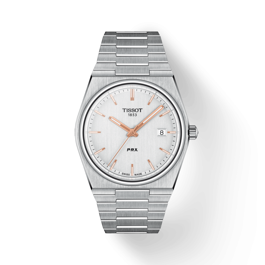 Tissot reedita un diseño icónico de finales de la década de 1970, con caja y brazalete integrados. La caja Tissot PRX 40205 mide 40 mm de diámetro y se caracteriza por su forma de barril. Acomoda un bisel delgado y redondeado. El Tissot PRX 40205 Quartz se viste con una esfera soleil en color negro o azul, junto con índices y agujas luminiscentes, o una esfera plateada y satinada que está acompañada de índices y agujas en color oro rosa.